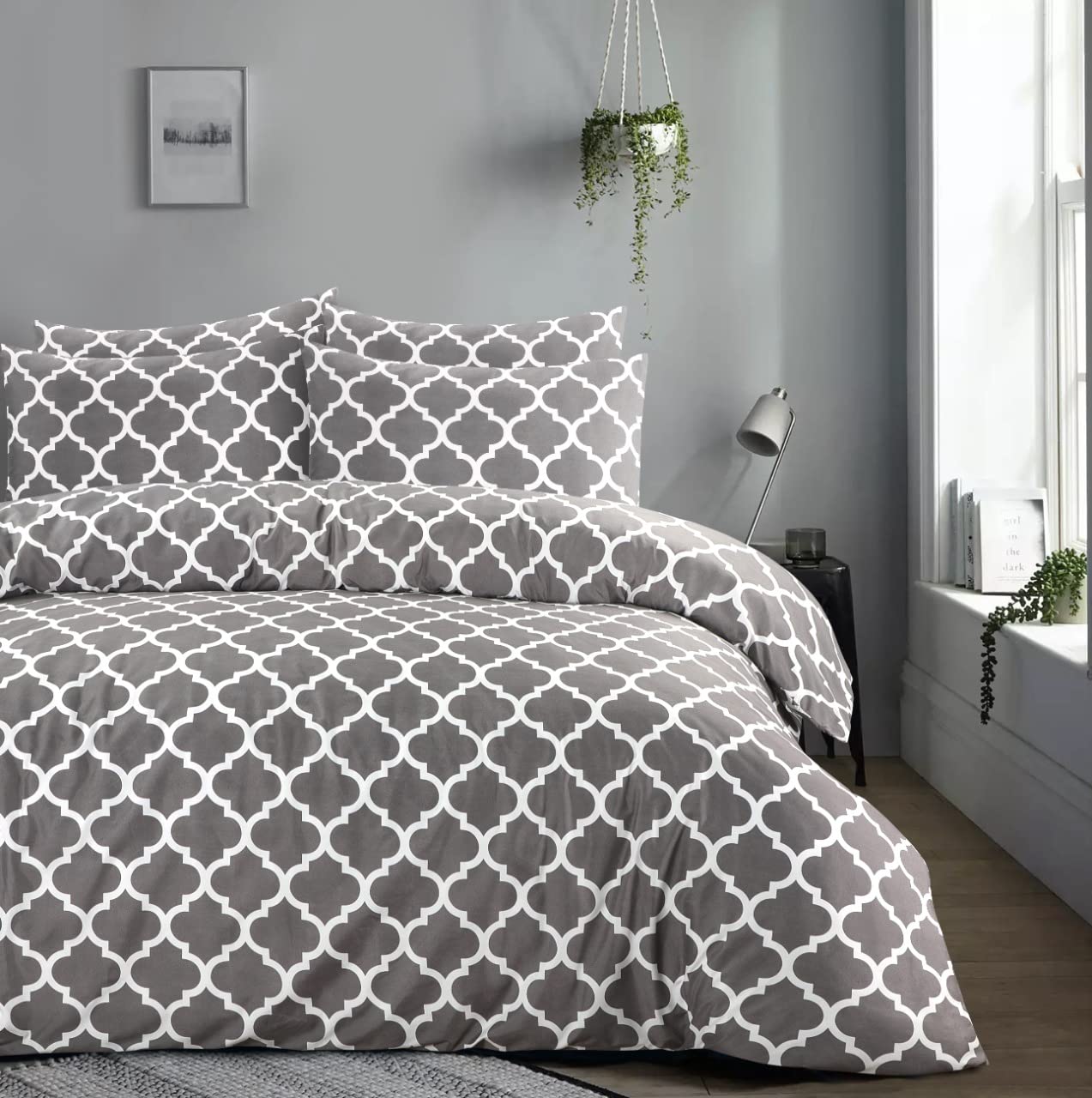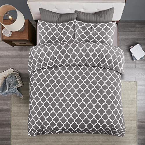 3 PCS Printed Soft Microfiber Duvet Cover Double with Pillowcases (200 x 200cm) – Grey