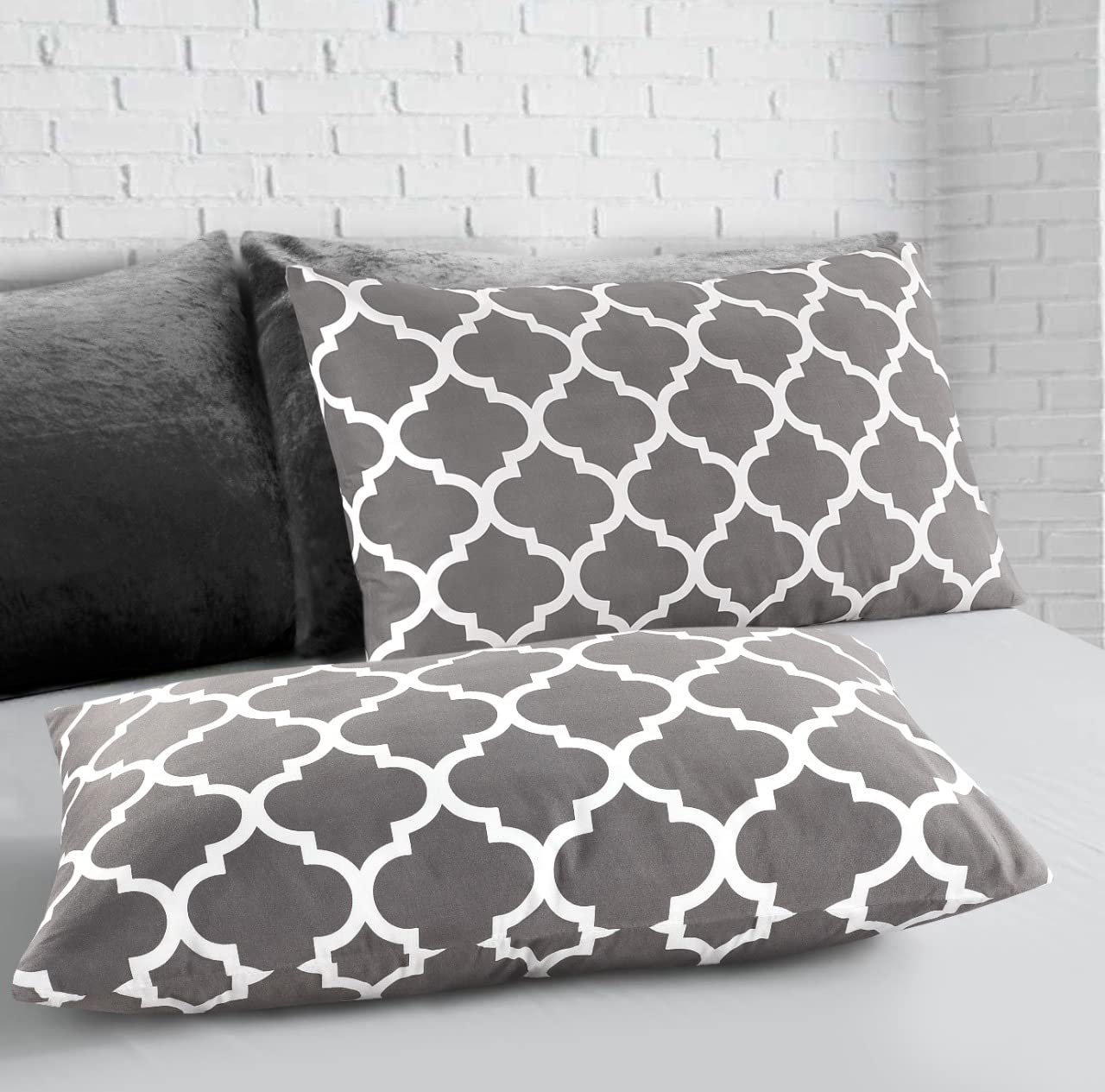 4PCS Single Reversible Black & Grey Fitted Sheet