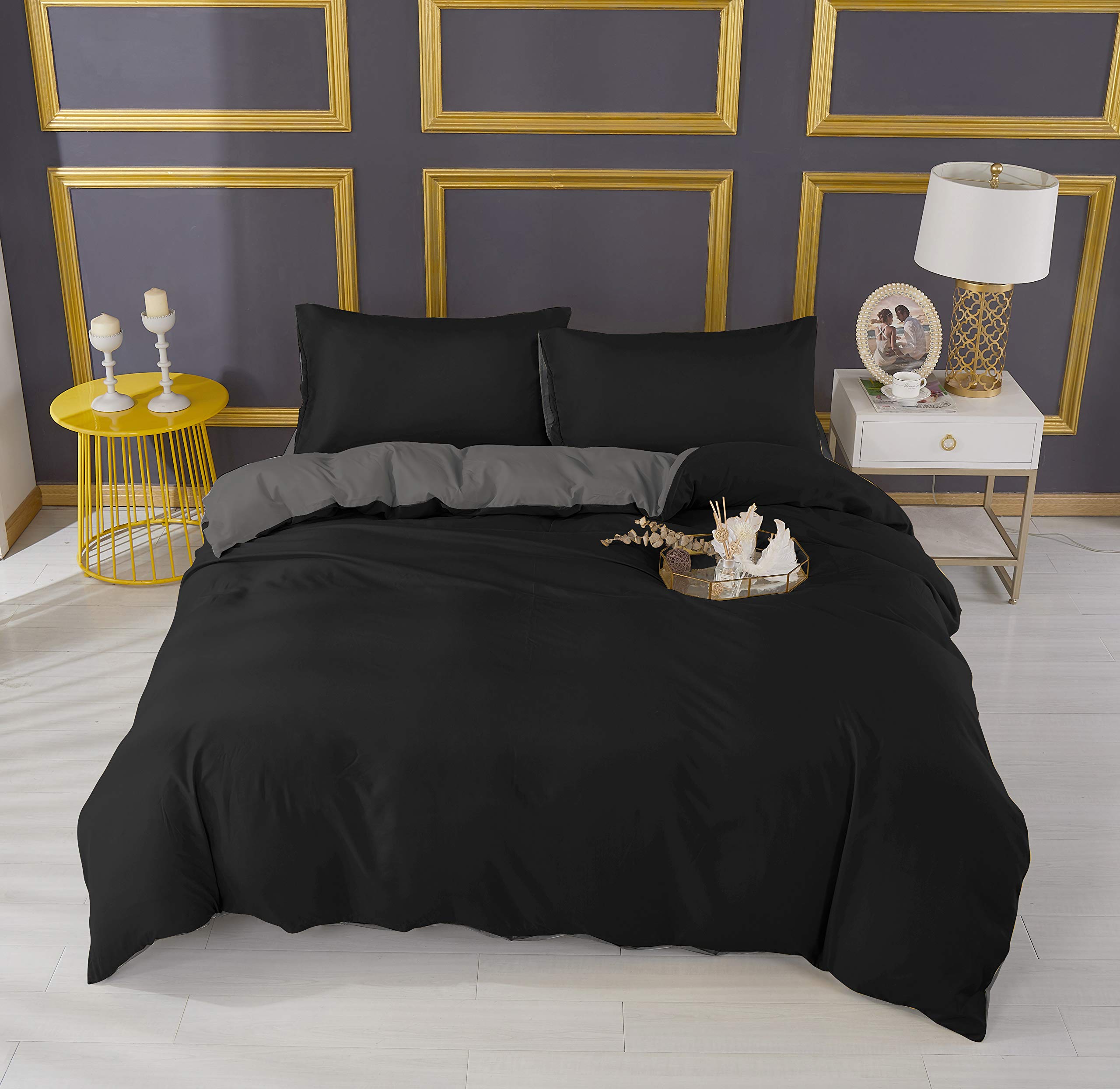 4PCS Single Reversible Black & Grey Fitted Sheet